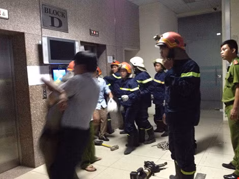 Lực lượng cứu hộ đang giải cứu thang máy. Ảnh: Người dân cung cấp