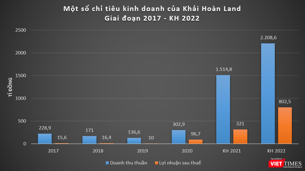 Kết niên 2020, tổng tài sản của Khải Hoàn Land đạt 2.370,5 tỉ đồng, tăng 69% so với đầu năm. Trong đó, chiếm tới 55,5% là các khoản phải thu dài hạn với giá trị lên tới 1.316 tỉ đồng. Năm 2020, Khải Hoàn Land ghi nhận doanh thu thuần và lợi nhuận sau thuế đạt lần lượt 302,9 tỉ đồng và 96,7 tỉ đồng./.