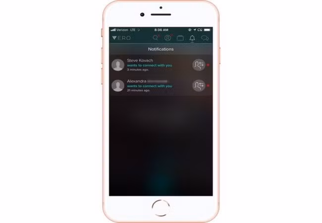 Bên trái của biểu tượng này là thanh Notifications. Nếu ai thêm bạn vào Vero, nó sẽ hiện lên ở đây.