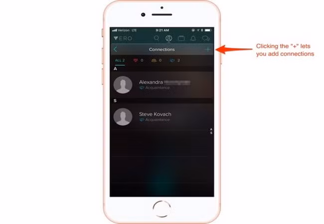 Bấm vào nút “Connections” trên trang này là cách tốt nhất để tìm kiếm những người bạn biết cũng đang dùng Vero. Bạn sẽ thấy tất cả các kết nối trên Vero được liệt kê ra ở đây.