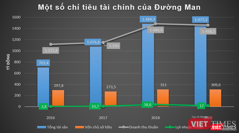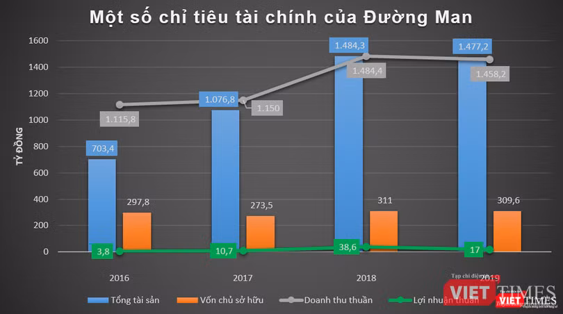 Tính đến cuối năm 2019, tổng tài sản của Đường Man đạt 1.477,2 tỷ đồng, tăng gấp đôi so với thời điểm cuối năm 2016; vốn chủ sở hữu tăng nhẹ lên mức 309,6 tỷ đồng.