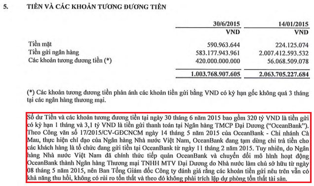 Đáng chú ý trong số đó, có 320 tỷ đồng tiền gửi có kỳ hạn 1 tháng và 3,1 tỷ đồng tiền gửi thanh toán tại OceanBank.