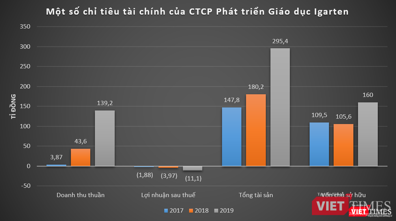 Dữ liệu của VietTimes cho thấy, trong giai đoạn 2017 - 2019, doanh thu thuần của Igarten liên tục tăng trưởng mạnh, từ 3,87 tỉ đồng năm 2017 lên 43,6 tỉ đồng năm 2018, tăng gấp 11 lần. Chỉ tiêu này tiếp tục tăng gấp gần 3,2 lần lên đạt 139,2 tỉ đồng vào năm 2019.