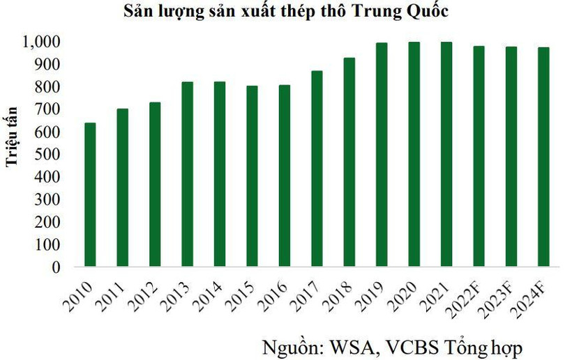 Bên cạnh đó, với chính sách cắt giảm khí thải và công suất thép của Trung Quốc, nguồn cung thép được dự báo sẽ giảm dần trong những năm tới. Do đó, VCBS kỳ vọng khi triển vọng nhu cầu thép tích cực trở lại và dự báo giá thép sẽ hồi phục trong nửa cuối 2023 sau khi giảm về mặt bằng giá thấp hơn hiện tại, nguyên nhân đến từ việc các chính sách kích thích cần thời gian để thể hiện rõ tác động giúp vực dậy nhu cầu đang rất yếu của thị trường Trung Quốc.