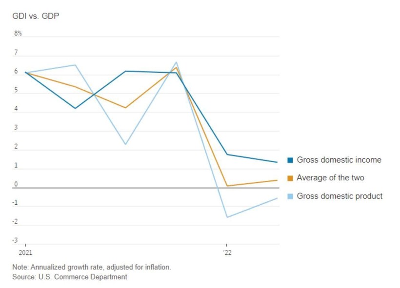Về lý thuyết, GDI và GDP nên ngang bằng nhau, mặc dù luôn có một số sai lệch về thống kê bởi chúng được đo nhờ sử dụng các bộ dữ liệu khác nhau, nguồn tin khác nhau. Năm nay, mức chênh lệch đó lớn một cách bất thường. Trong nửa đầu năm, GDP đã điều chỉnh yếu tố lạm phát thu hẹp 1,1% so với năm ngoái. Cùng thời điểm, Bộ Thương mại Mỹ công bố GDI – được đo bởi lợi nhuận của doanh nghiệp, lương, thu nhập cá nhân, lãi suất và tiền thuê – đã tăng 1,6%.