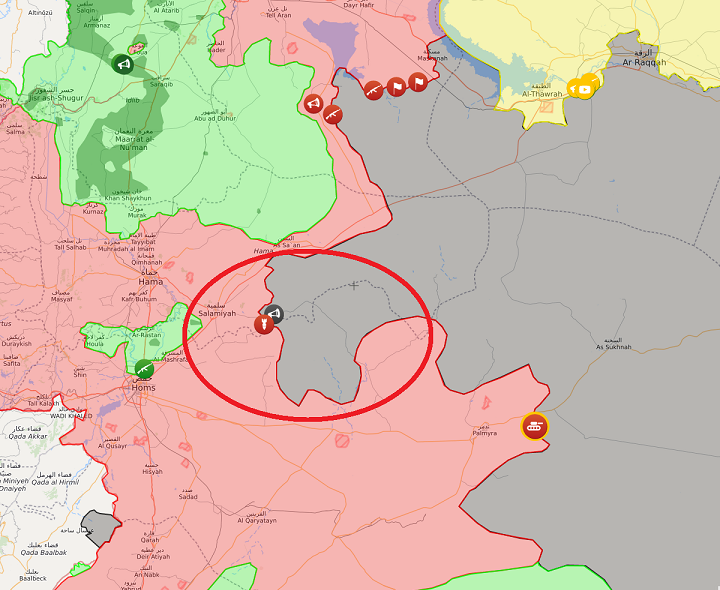 Quân đội Syria, với sự yểm trợ của không quân và lực lượng "cố vấn" Nga (theo như các bức ảnh) hạ quyết tâm đẩy lùi và xóa sạch các ổ IS trong khu vực này. Mục đích cuối cùng là tiêu diệt IS trên vùng sa mạc phía bắc Palmyra. Để giải phóng một khu vực lãnh thổ rộng lớn này sẽ mất khoảng thời gian.