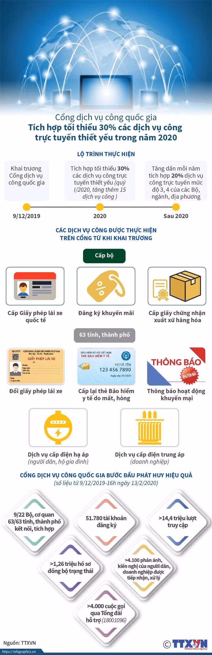 Thực hiện dịch vụ công trực tuyến qua cổng dịch vụ công quốc gia sẽ giúp người dân, doanh nghiệp thuận lợi hơn nhiều do có thể tái sử dụng các thông tin đã có và tiết kiệm thời gian chuẩn bị hồ sơ, từ đó, giảm đáng kể chi phí xã hội trong thực hiện thủ tục hành chính, đặc biệt là những thủ tục hành chính có liên quan đến nhiều cơ quan./.