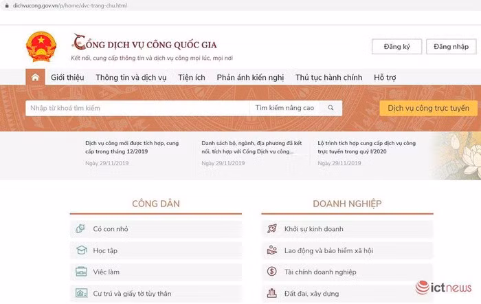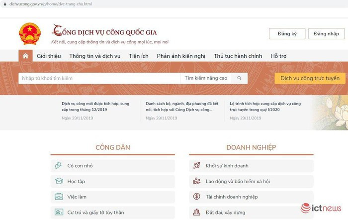 Cổng dịch vụ công quốc gia tại địa chỉ www.dichvucong.gov.vn sẽ chính thức được khai trương vào chiều ngày 9/12/2019.