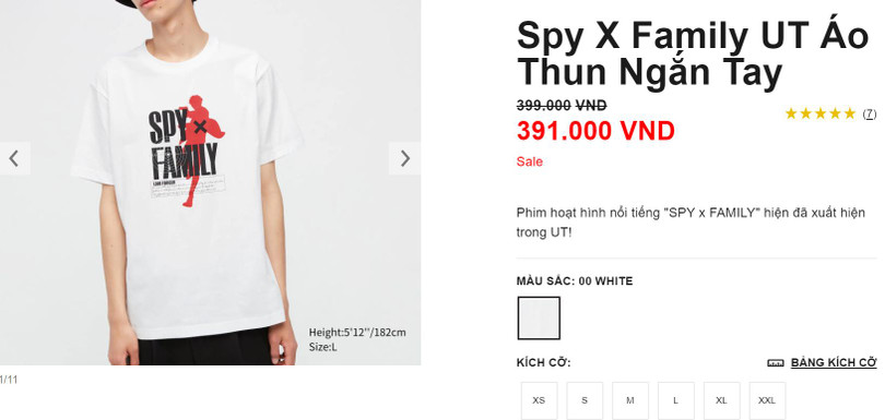 Chiếc còn lại là của hãng Uniqlo, có giá bán tại Việt Nam là 391 nghìn đồng. Họa tiết Spy x Family lấy từ bộ truyện manga cùng tên của Endo Tatsuya.