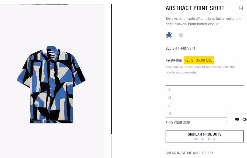 Đã có rất nhiều bình luận "xin info" của 2 chiếc áo trên mạng xã hội. Không lâu sau, cư dân mạng đã tìm ra xuất xứ của hai chiếc áo này. Chiếc áo có hoa văn xanh, đen, trắng là của hãng Zara có tên là Abstract Print Shirt. Nó có giá tại Mỹ là 35,99 USD (tức là khoảng 800 nghìn đồng).