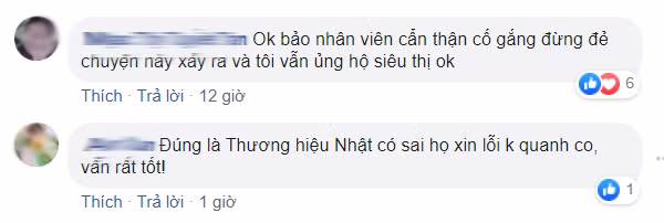 Tuy nhiên, cũng có khá nhiều người tỏ ra thông cảm cho sự cố này. Một người dùng bình luận: “Bảo nhân viên cẩn thận, cố gắng đừng để chuyện này xảy ra. Tôi vẫn ủng hộ siêu thị”. Một người khác viết: “Đúng là thương hiệu Nhật. Có sai thì họ xin lỗi, không quanh co. Vẫn rất tốt” và “Rút kinh nghiệm để chất lượng và quản lý tại môi trường ăn uống vệ sinh tốt hơn thôi, chứ thật ra ở đâu cũng vậy, có nhiều vấn đề ngoài tầm kiểm soát như thế này”.