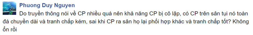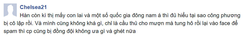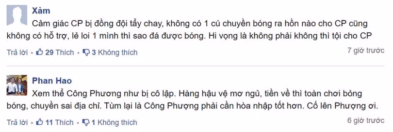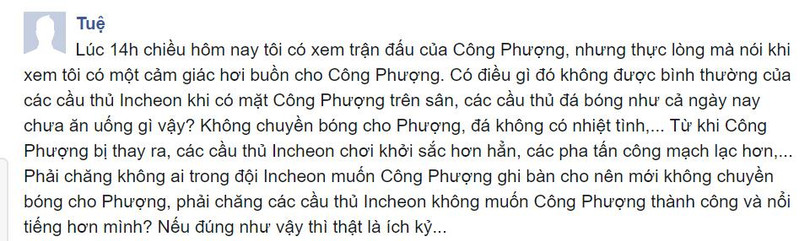 Dù sao đi nữa đây mới chỉ là trận đấu đá chính từ đầu thứ 2 của Công Phượng, đồng thời Jeonbuk FC là đội bóng rất mạnh, nên những kết luận của các cổ động viên là không có cơ sở. Hy vọng Công Phượng và đồng đội của anh có thể thi đấu tốt hơn trong những trận tới.