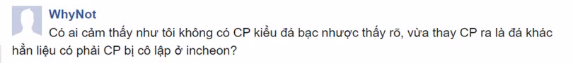Ngay sau khi trận đấu kết thúc, rất nhiều người hâm mộ Việt Nam đã tỏ ra nghi ngờ rằng Công Phượng đang bị các đồng đội cô lập. Một số cổ động viên giải thích rằng cầu thủ Hàn Quốc từ trước đến nay không đánh giá cao cầu thủ đến từ Đông Nam Á, nên họ không thoải mái chơi bóng với Công Phượng. Một số khác lại cho rằng chính việc các cổ động viên Việt Nam vào fanpage của CLB Incheon để tung hô Phượng như một ngôi sao khiến đồng đội của anh cảm thấy không hài lòng.