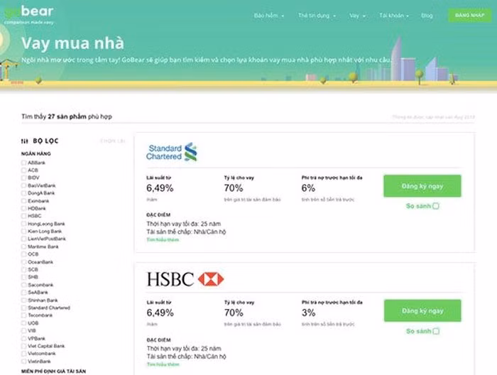 Hiện tại, người dùng GoBear Việt Nam đã có thể nhanh chóng so sánh sản phẩm vay thế chấp phù hợp với nhu cầu.