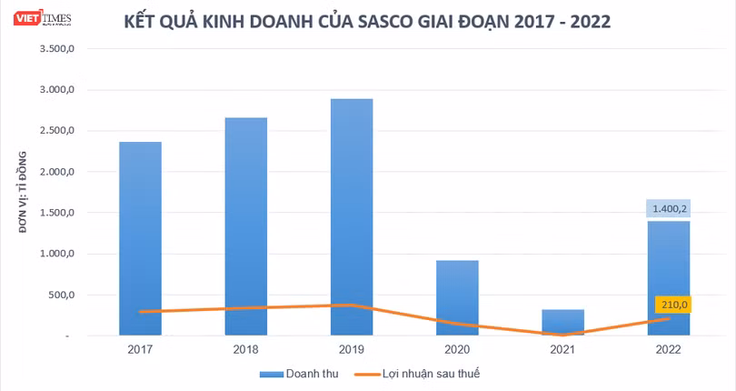 Lũy kế cả năm 2022, doanh thu công ty hàng không này đạt 1.400,2 tỉ đồng, tăng trưởng 336% so với cùng kỳ. Lợi nhuận sau thuế đạt 210 tỉ đồng, bằng 70 lần số tiền lãi Sasco thu được trong năm 2021.