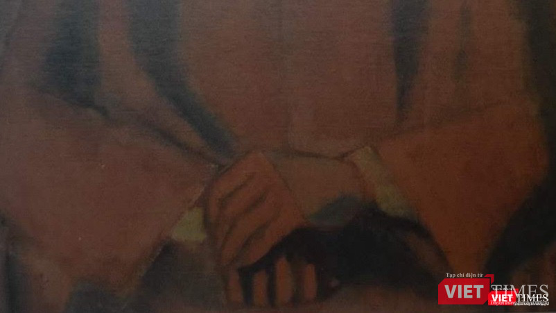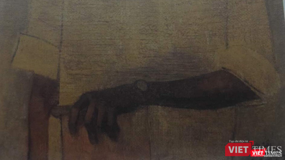| Chi tiết về bàn tay trong tranh Nguyễn Sáng. Vì lý do bản quyền, chúng tôi sẽ chỉ đăng tải một phần nhỏ của bức tranh danh họa |