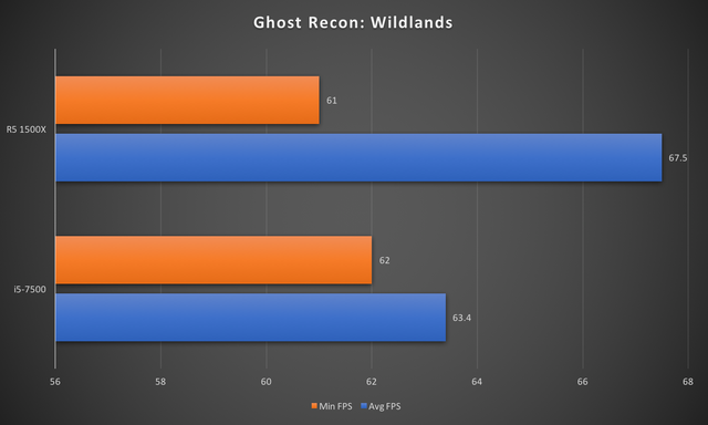 Cuối cùng là Wildlands, tựa game hành động thế giới mở của Ubisoft hiện đang nằm trong top các game sát phần cứng. Nếu không nhờ chiếc card đồ hoạ tàm tạm GTX 1070 của tôi thì chắc với thiết lập Very High, cả 2 CPU này đều khó đạt được mốc 60FPS.