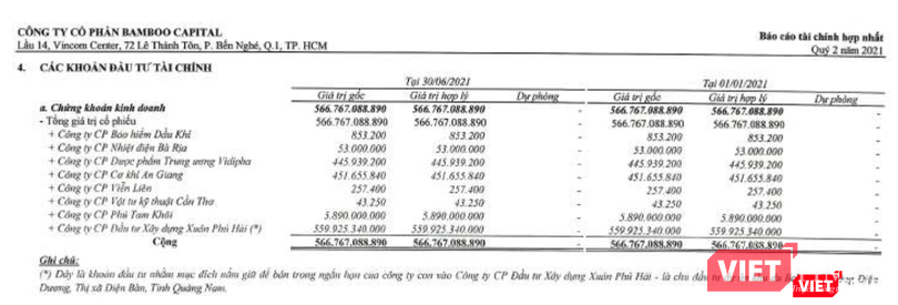 Khoản đầu tư tài chính 559,9 tỉ đồng vào Xuân Phú Hải của công ty con BCG được ghi nhận trên báo cáo tài chính hợp nhất từ cuối năm ngoái, với mục đích nắm giữ để bán trong ngắn hạn. Song, cho tới cuối quý 2/2021, nhóm BCG vẫn chưa bán được khoản đầu tư này.