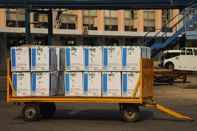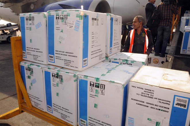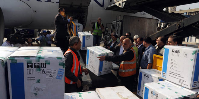 Đón chuyến hàng tại sân bay ngày 29.08.2016, Bộ trưởng bộ Giao thông vận tải Ali Hamoud trả lời các nhà báo cho biết: Bộ đã hoàn thành tất cả các thủ tục hải quan, đóng gói, vận chuyển và thực hiện các biện pháp đảm bảo các lô hàng được đưa đi không chậm trễ, theo tiêu chuẩn và dưới sự giám sát của Bộ Y tế.