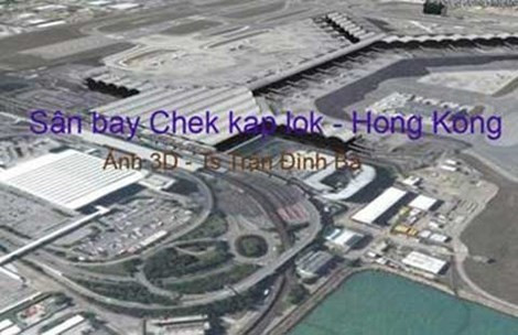 TS Trần Đình Bá đưa ra hai hình ảnh và cho rằng phối cảnh sân bay Long Thành (ảnh trên) đã “đạo” sân bay Chek Kap Lok (ảnh dưới).