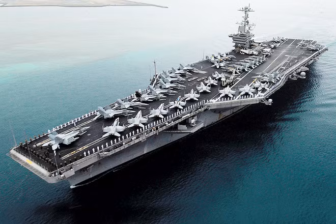 USS John C. Stennis là tàu sân bay hạt nhân lớp Nimitz, được đưa vào hoạt động từ năm 1995. Tàu có thể đạt tốc độ hơn 30 hải lý, sức chứa 90 máy bay và trực thăng. Stennis có hệ thống tên lửa phòng không của NATO RIM-7 Sea Sparrow và Rolling Air, hệ thống phòng thủ tầm gần Phalanx, và hệ thống tác chiến điện tử SLQ-32. Ảnh: US Navy