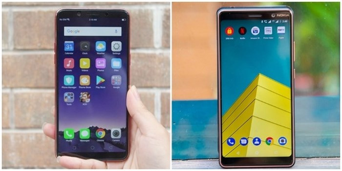 Thiết kế: Ngoài điểm chung là thiết kế màn hình tràn viền ở mặt trước thì cả Nokia 7 Plus và Oppo F5 đều khá khác biệt. Điện thoại của Nokia có kiểu dáng vuông vắn trái ngược với kiểu bo tròn mạnh ở các góc trên điện thoại của Oppo, có lẽ chính điều này lại giúp F5 nhỏ gọn và cầm bằng một tay sử dụng dễ hơn so với 7 Plus.