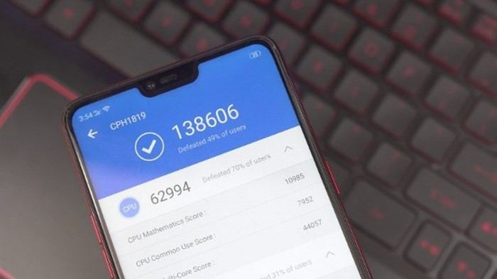 Với bài đánh giá đánh giá hiệu năng tổng thể AnTuTu Benchmark, Oppo F7 ghi được 138.606 điểm, cao hơn nhiều so với 90.145 điểm mà Vivo V9 ghi được.