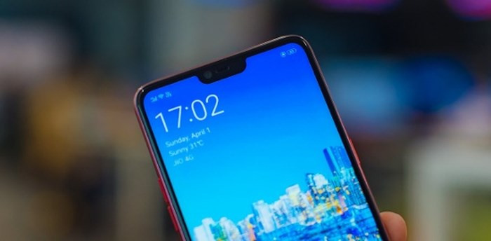 Đối thủ Oppo F7 có nhiều điểm chung về màn hình so với Vivo V9. Máy có kích thước màn hình nhỏ hơn một chút với 6.23 inch nhưng cùng độ phân giải, cùng tầm nền hiển thị, cùng tỷ lệ màn hình 19:9 với thiết kế tai thỏ, tuy nhiên màn hình của Oppo F7 mới chỉ chiếm tỷ lệ 82.5% thân máy so với 85.2% của Vivo V9.