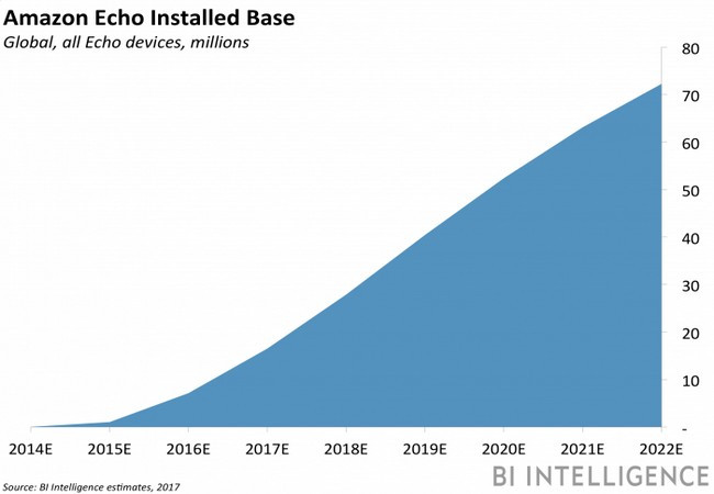 Amazon đã phát triển vị trí đi đầu của họ với một loạt các sản phẩm mới được phát hành năm ngoái: loa thông minh có màn hình Echo Show thiết kế giống tablet; camera Echo Look; loa Echo Plus; đồng hồ báo thức Echo Spot; loa Echo được thiết kế lại.