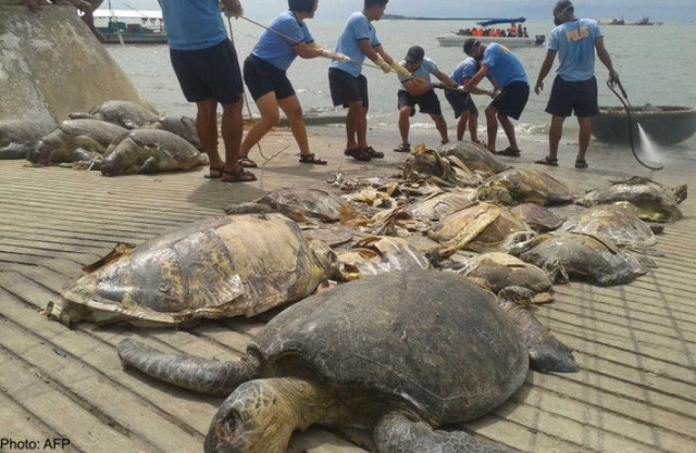 Những con rùa biển khổng lồ bị ngư dân Trung Quốc đánh bắt trái phép ở vùng biển quần đảo Trường Sa