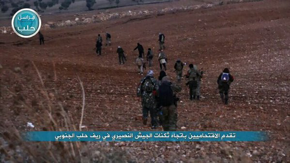 Các chiến binh Jabhat al-Nusra đang tiến về al-Waddihi ở phía Nam của Aleppo. Đoàn chiến binh này do thủ lĩnh Abu Hajer al-Homsi đã đến khu vực phía Nam.