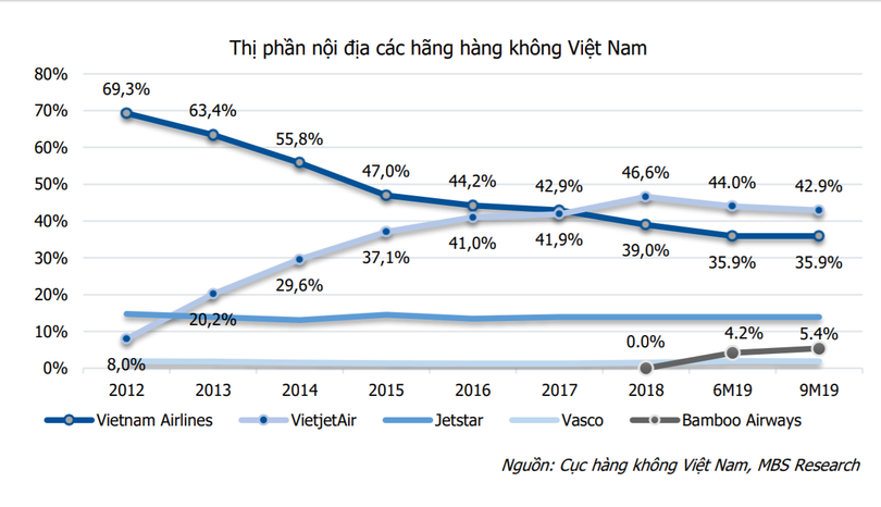 Mặt bằng giá vé khó có thể tăng trong năm 2020, thậm chí có thể tiếp tục giảm, trong cuộc đua thị phần của Bamboo Airways, Vinpearl Air (dự kiến cất cánh vào tháng 7) với Vietnam Airlines và Vietjet Air.