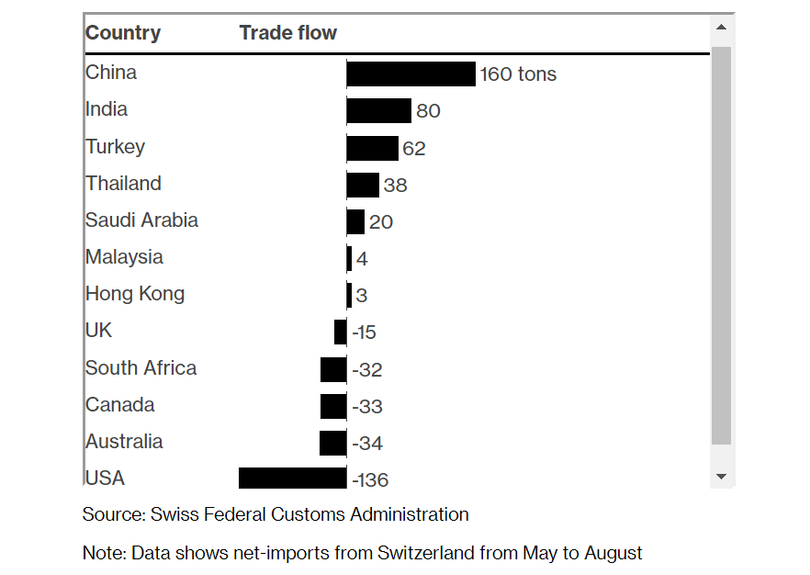 Một lượng vàng lớn, vì vậy, đang được rút ra khỏi những trung tâm tài chính như New York và hướng sang phía Đông nhằm đáp ứng nhu cầu dâng cao ở Thượng Hải hay Istanbul.