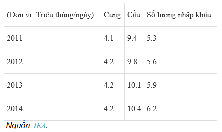 Lượng nhập khẩu dầu thô của Trung Quốc trong năm 2013