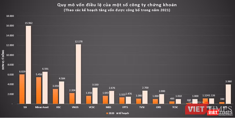 Theo tính toán của VietTimes, nếu các đợt phát hành kể trên diễn ra thuận lợi, quy mô vốn điều lệ của SSI sẽ tăng lên mức 15.961,7 tỉ đồng, tăng gấp 2,6 lần so với đầu năm 2021.