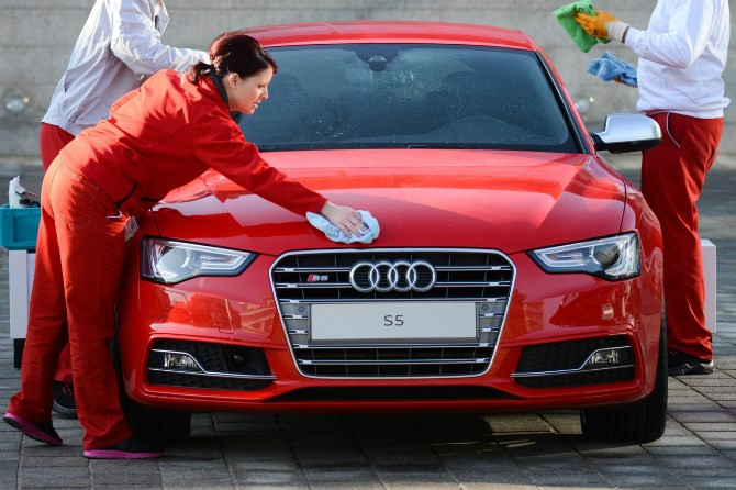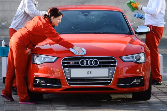 Nhân viên bảo trì một chiếc Audi.