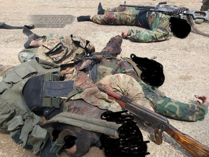 | Hàng loạt tay súng khủng bố bị diệt trên chiến trường Hama. Ảnh ANNA News |