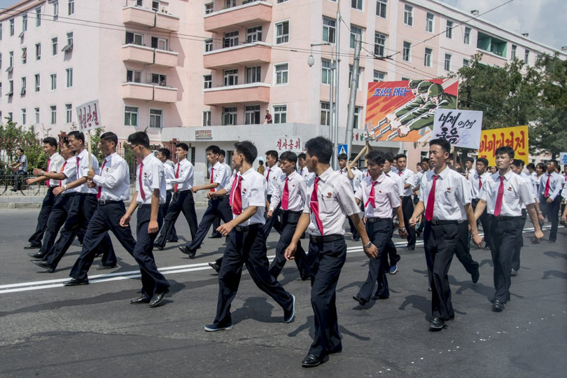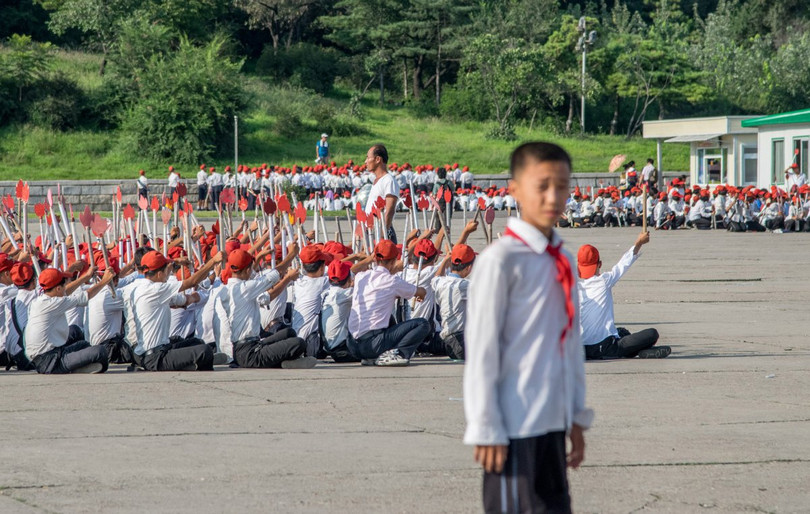 Cơ quan quản lý du lịch Triều Tiên khuyến khích du khách chụp các bức ảnh về hoạt động phong trào của thanh thiếu niên. Trong ảnh là nhóm học sinh tập luyện cho diễu hành kỳ niệm 70 năm thành lập Đảng Cộng sản Triều Tiên