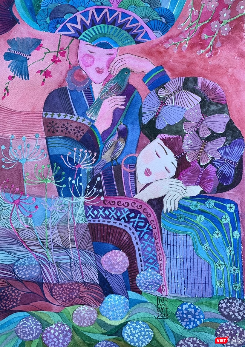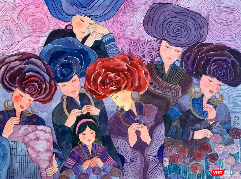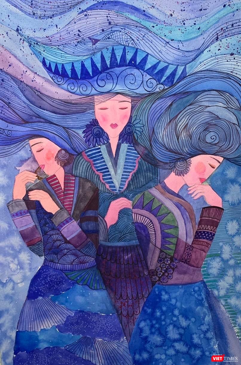 Vừa vẽ tranh, vừa tìm hiểu về công việc làm nông, trồng đay, trồng lanh, sản xuất vải thủ công. Lo ngại nghề nhuộm chàm có thể mai một, Linh mong muốn nghiên cứu và làm nhiều hơn tác phẩm với chất liệu này, để bà con Sapa vững tin vào giá trị truyền thống.