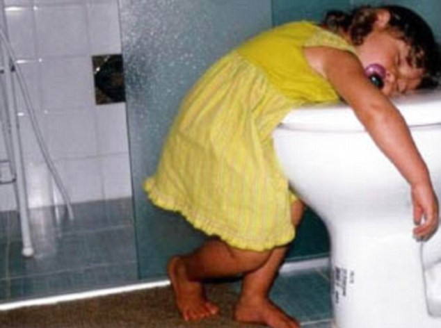 Cha mẹ của các bé đã chụp lại những bức ảnh ngủ khó đỡ nhất. Một số cô cậu ngủ giải lao trong bữa ăn sáng, một số khác lăn ra ngủ trong phòng tắm, trên bồn cầu hoặc ngay cả trong siêu thị.