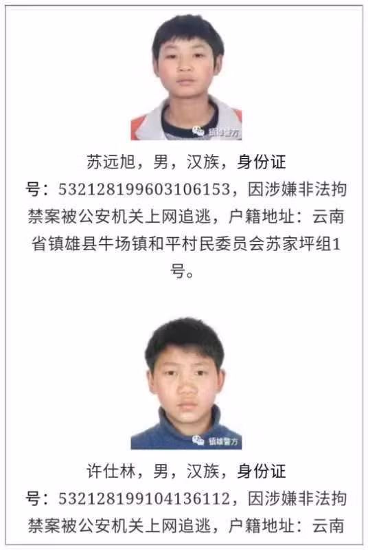 Sáng 20/3, cảnh sát huyện Zhenxiong đã phải đưa ra một tuyên bố xin lỗi về việc sử dụng hình ảnh thời thơ ấu của nghi phạm. Họ đã cố gắng giải thích rằng họ không thể tìm thấy bất kỳ bức ảnh nào gần đây và nghĩ rằng các đặc điểm trên khuôn mặt của anh ta từ khi còn là một đứa trẻ mẫu giáo vẫn có thể nhận ra vào thời điểm này.