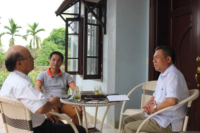 Ông Lê Văn Bàng (bên trái) trao đổi với các nhà báo của VietTimes tại tư gia.