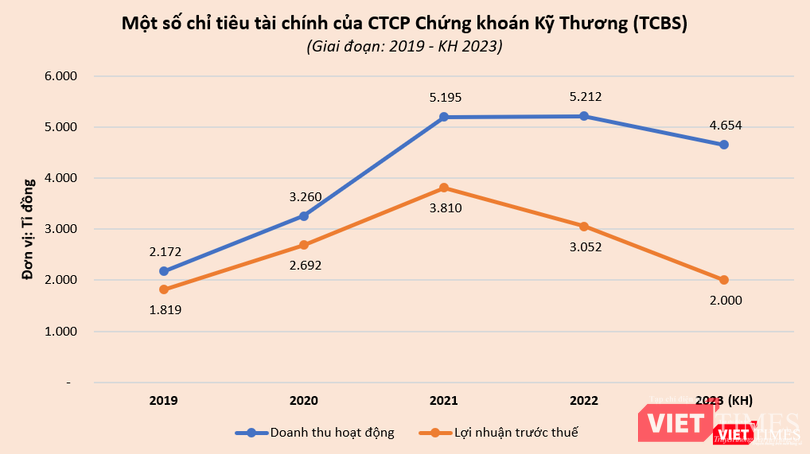 Theo đó, Hội đồng quản trị (HĐQT) TCBS trình kế hoạch kinh doanh năm 2023 với doanh thu hoạt động đạt 4.654 tỉ đồng và lợi nhuận trước thuế ở mức 2.000 tỉ đồng, lần lượt giảm 10,7% về doanh thu và 34,4% lợi nhuận so với thực hiện năm 2022.