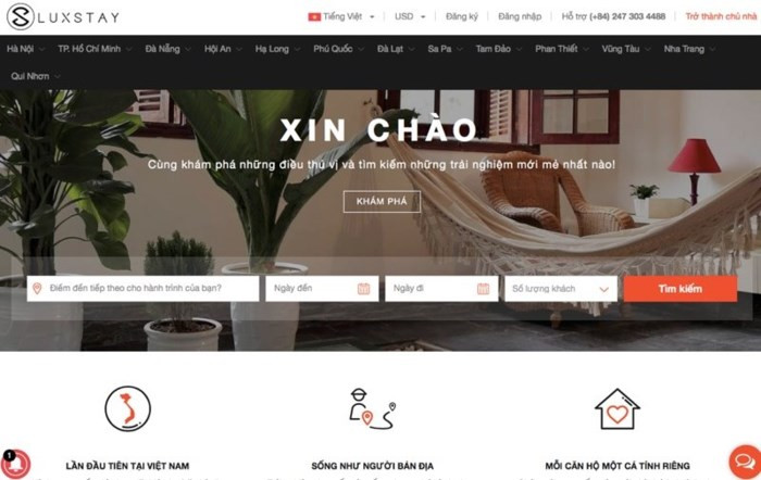 Một phần giao diện website luxstay.com - Ảnh chụp màn hình