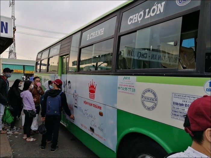 Khách đang chờ chuẩn bị lên một chiếc xe buýt - Ảnh: H.Đ