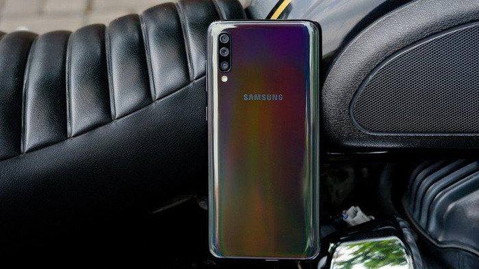 Galaxy A70 gắn bó với chip Snapdragon 675, RAM 6GB/bộ nhớ 128GB cùng viên pin 4.500mAh có khả năng sạc nhanh 22,5W và chạy Android 9.0 Pie.