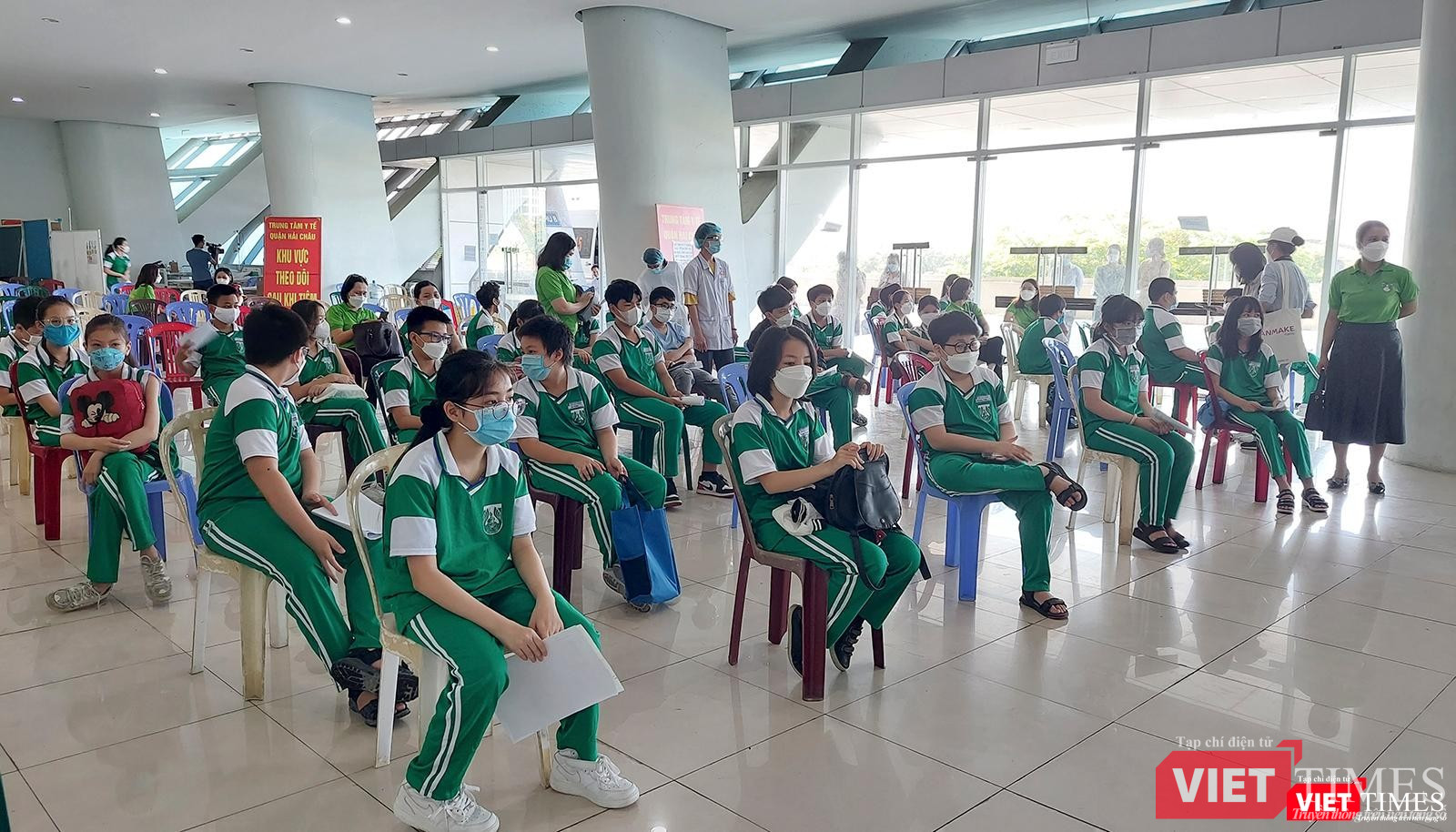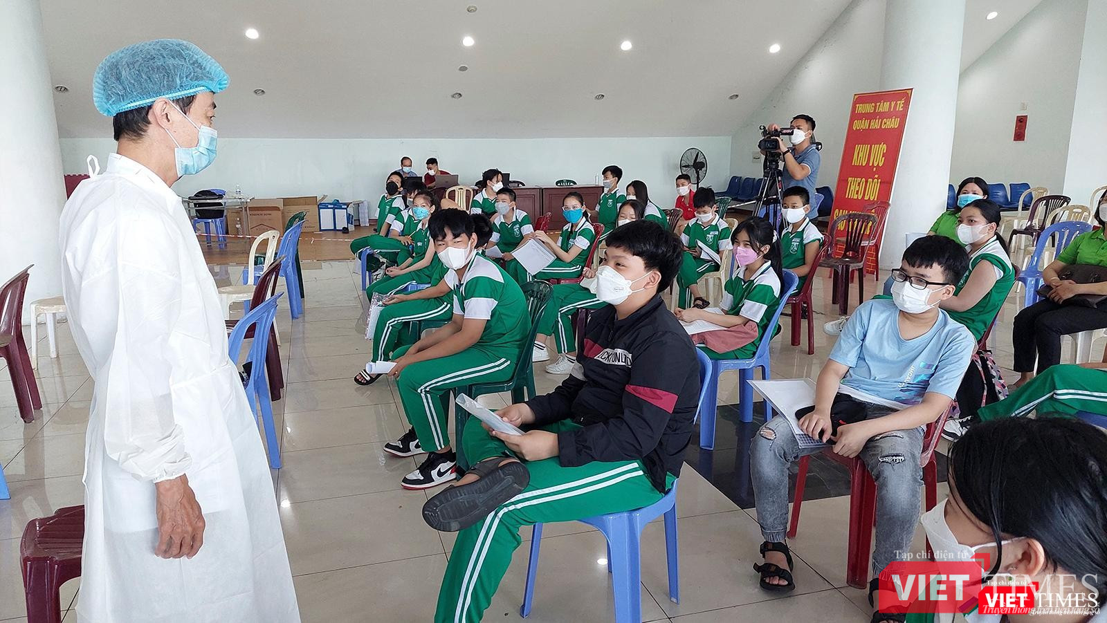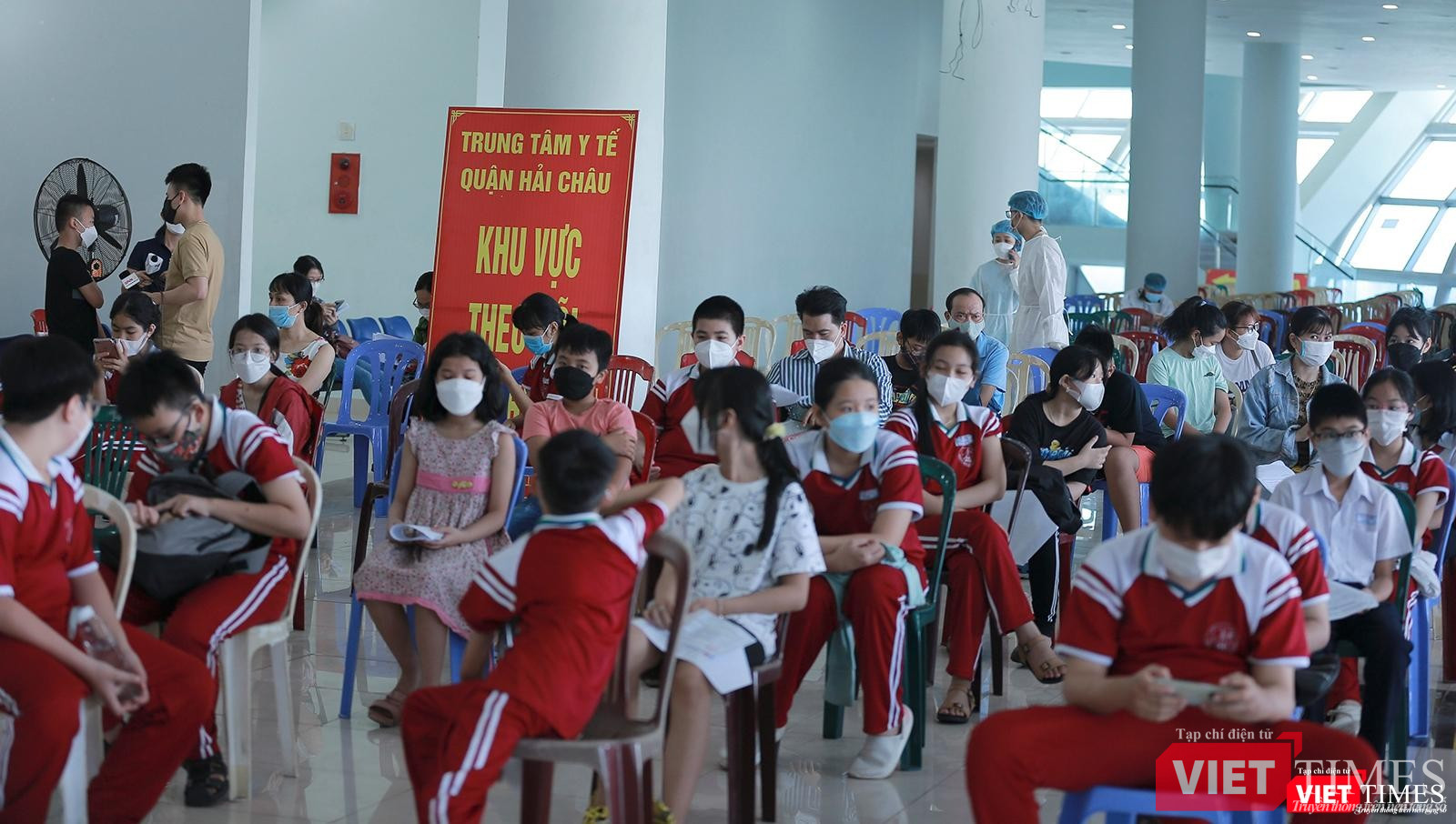 Một số hình ảnh trong ngày đầu Đà Nẵng tiêm vaccine phòng COVID-19 cho trẻ từ 5-12 tuổi tại địa điểm tiêm Cung thể thao Tiên Sơn: