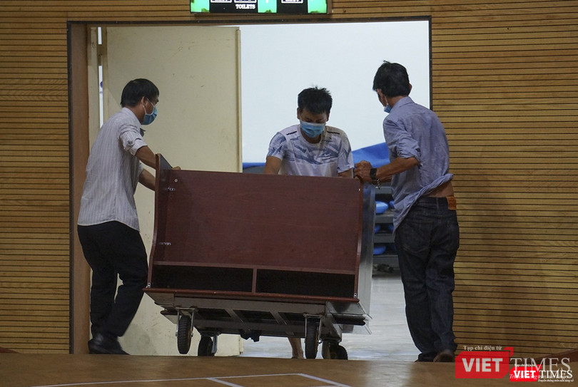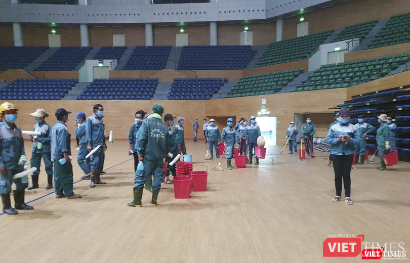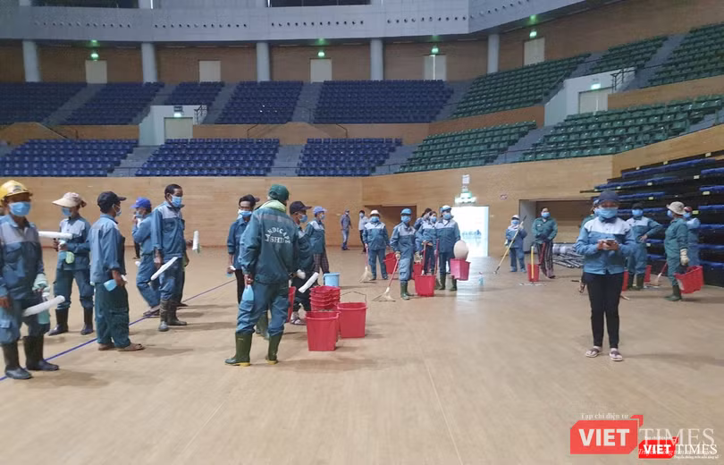 Sau chỉ đạo của Thành ủy Đà Nẵng về việc trưng dụng Cung thể thao Tiên Sơn (Đà Nẵng) làm bệnh viện dã chiến ứng phó với dịch COVID-19, sáng ngày 1/8, lực lượng công nhân đã có mặt thu dọn đồ đạc, vệ sinh toàn bộ bề mặt sân và các tầng để phục vụ việc xây dựng bệnh viện dã chiến theo phương án.