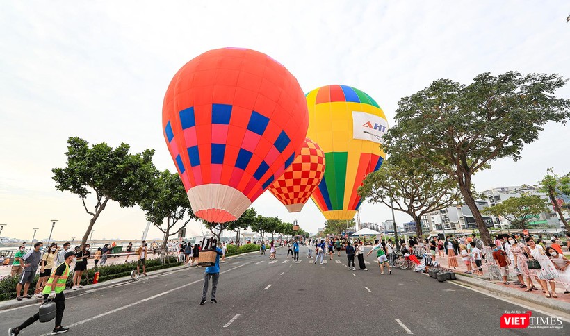 Với sự xuất hiện của hàng loạt khinh khí cầu bên bờ sông Hàn, nhiều người dân và du khách đã có mặt tại nơi diễn ra hoạt động khinh khí cầu để chụp hình check-in lưu giữ khoảnh khắc. Không những vậy, nhiều du khách cũng đã tham gia trải nghiệm bay trên cao ngắm nhìn toàn cảnh TP Đà Nẵng từ trên cao.