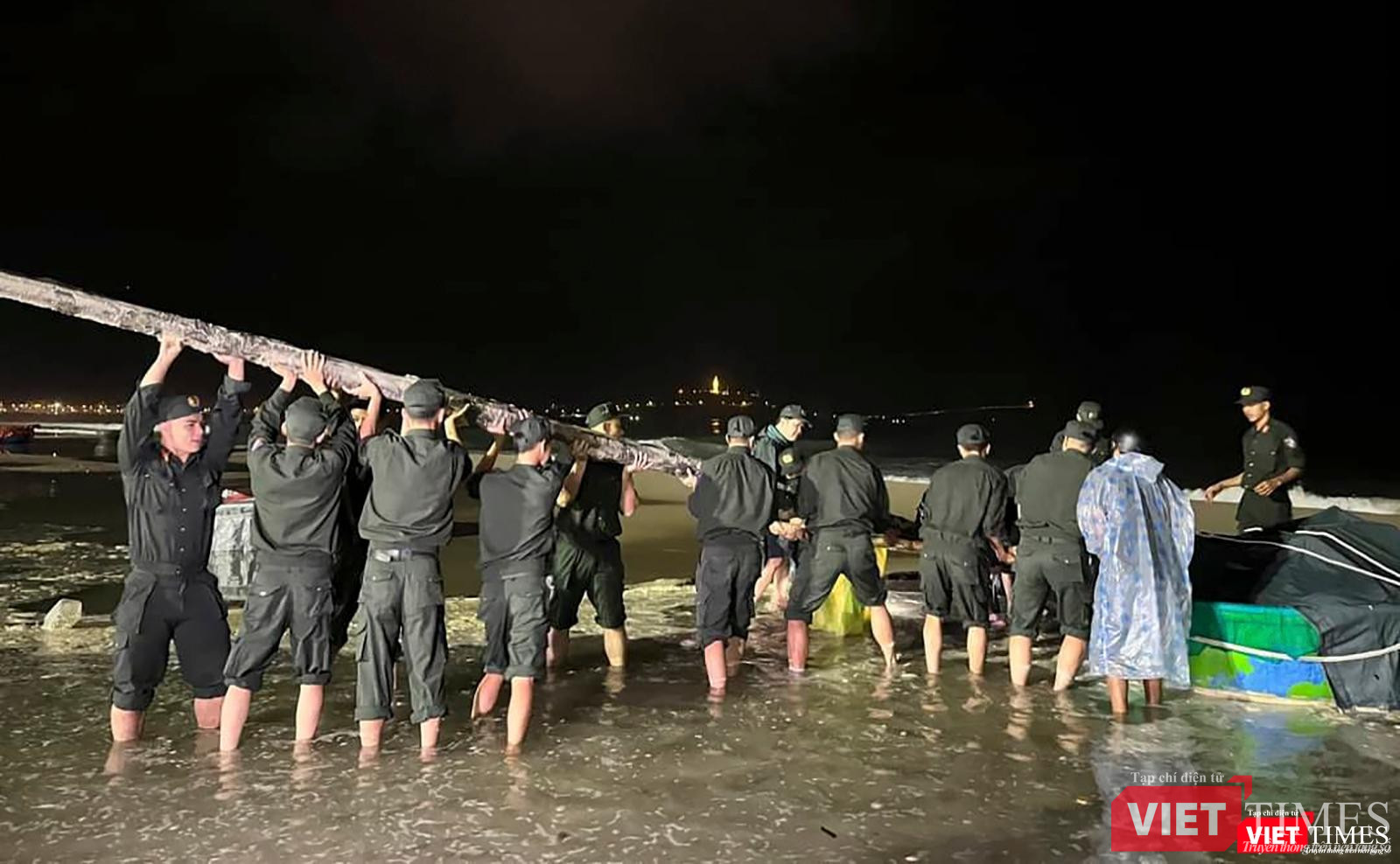 Lực lượng Công an Đà Nẵng xuyên đêm giúp dân đưa tàu thuyền lên bờ